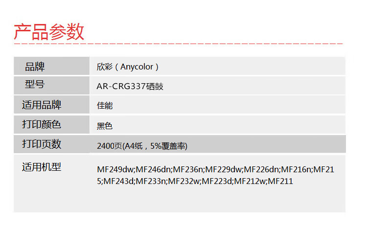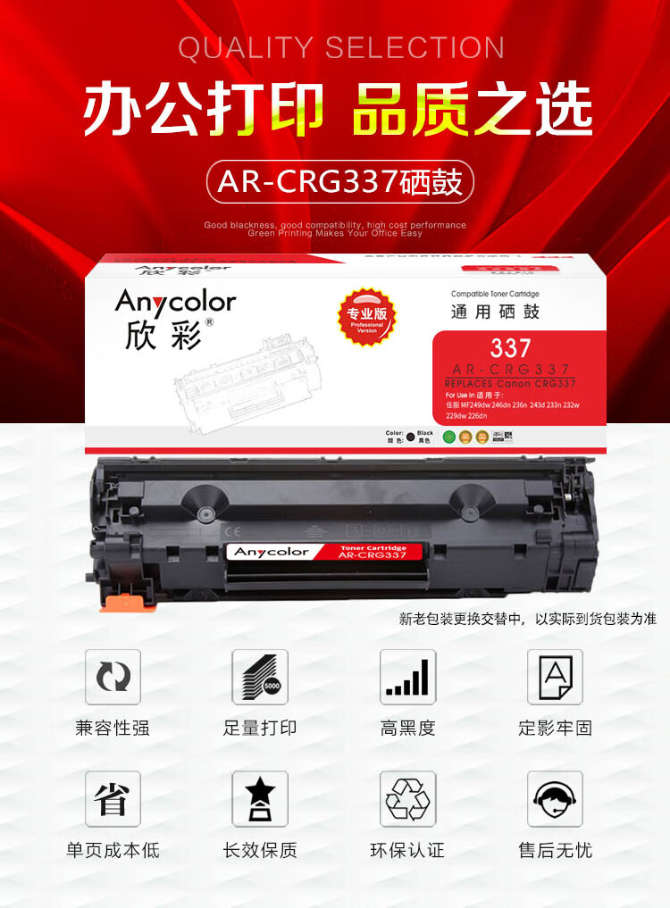 欣彩(Anycolor) AR-337 专业版 2400页 适用佳能MF249dw 硒鼓 1.00 只/支 (计价单位:支) 黑色
