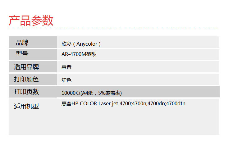 欣彩(Anycolor) AR-4700M 专业版 10000页 适用惠普4700n 硒鼓 1.00 只/支 (计价单位:支) 红色