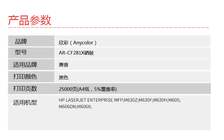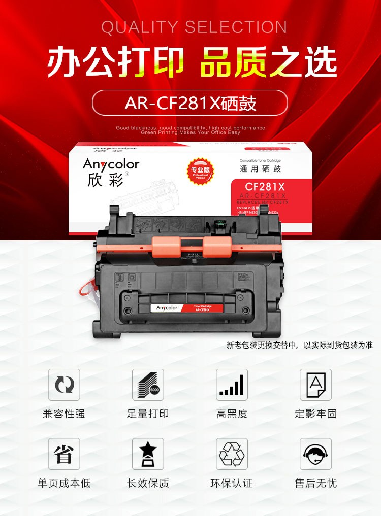 欣彩(Anycolor) AR-CF281X 专业版 25000页 适用惠普M630h 硒鼓 1.00 只/支 (计价单位:支) 黑色