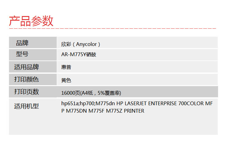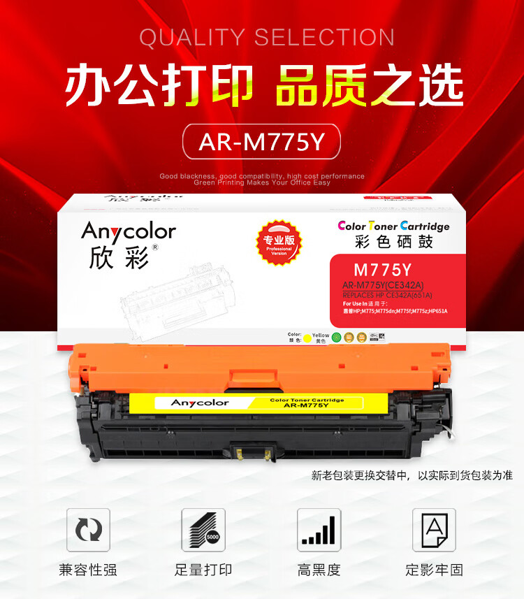 欣彩(Anycolor) AR-M775Y 专业版 16000页适用惠普 M775 硒鼓 1.00 只/支 (计价单位:支) 黄色