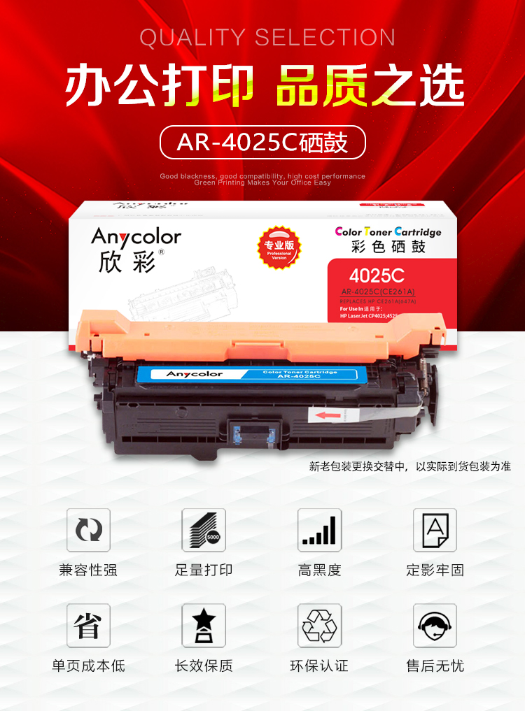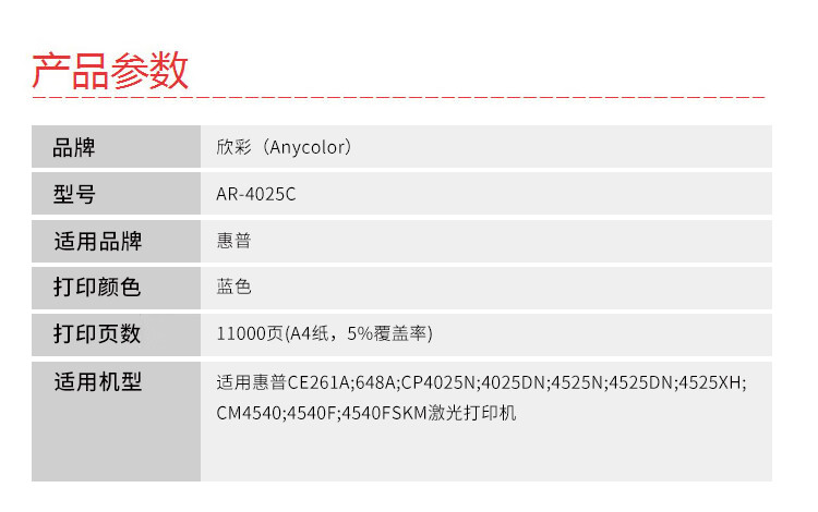 欣彩(Anycolor) AR-4025C 专业版 11000页 适用惠普CP4025N 硒鼓 1.00 只/支 (计价单位:支) 蓝色