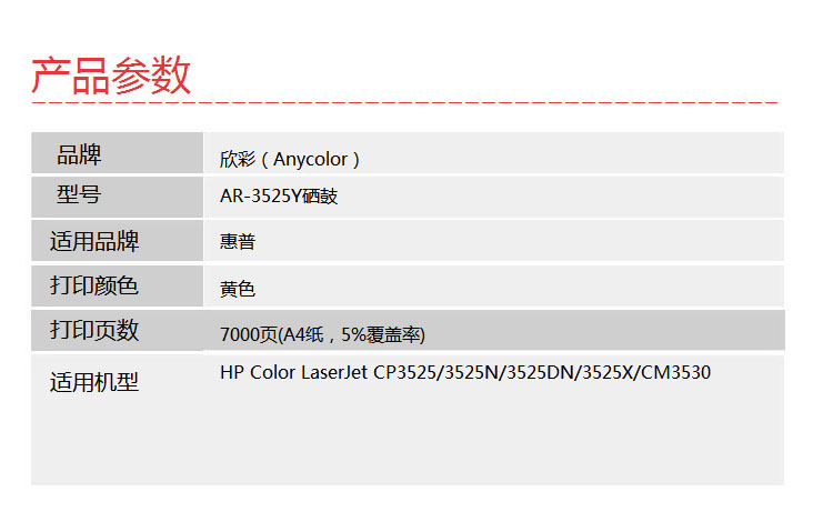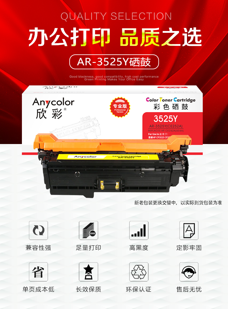 欣彩(Anycolor) AR-3525Y 专业版 7000页 适用惠普CP3525 硒鼓 1.00 只/支 (计价单位:支) 黄色