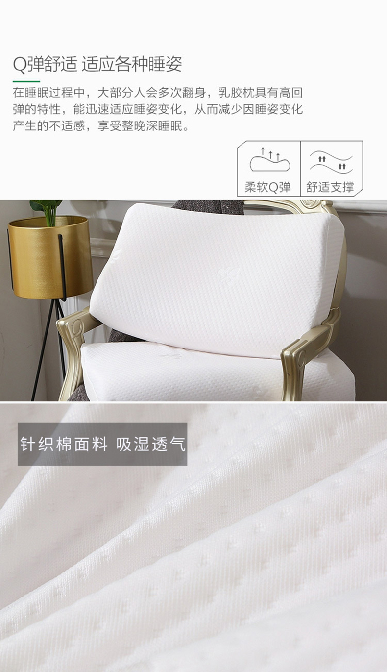 多奇曼 泰国天然乳胶枕 45*73cm PH-C2012 白色