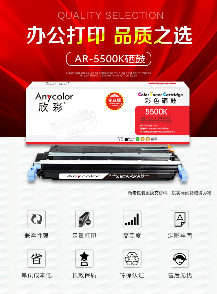 欣彩(Anycolor) AR-5500K 专业版 13000页 适用惠普 5500 硒鼓 1.00 只/支 (计价单位:支) 黑色