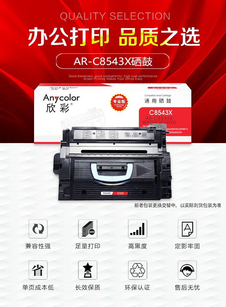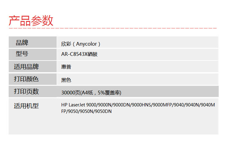 欣彩(Anycolor) AR-C8543X 专业版7000页 适用惠普9000 硒鼓 1.00 只/支 (计价单位:支) 黑色