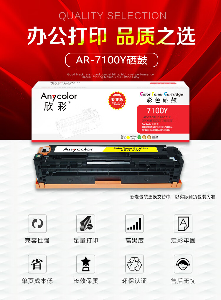 欣彩(Anycolor) AR-7100Y 专业版 1500页 适用佳能 7100Cn 硒鼓 1.00 只/支 (计价单位:支) 黄色