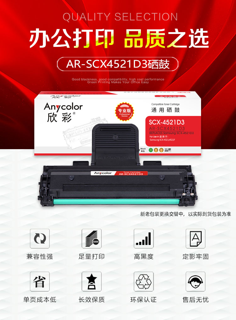 欣彩(Anycolor) AR-SCX4521D3 专业版3000页 适用三星4321 硒鼓 1.00 只/支 (计价单位:支) 黑色
