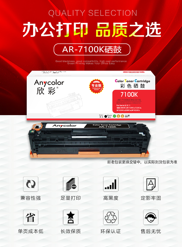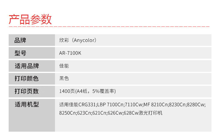 欣彩(Anycolor) AR-7100K 专业版 1400页 适用佳能 7100Cn 硒鼓 1.00 只/支 (计价单位:支) 黑色
