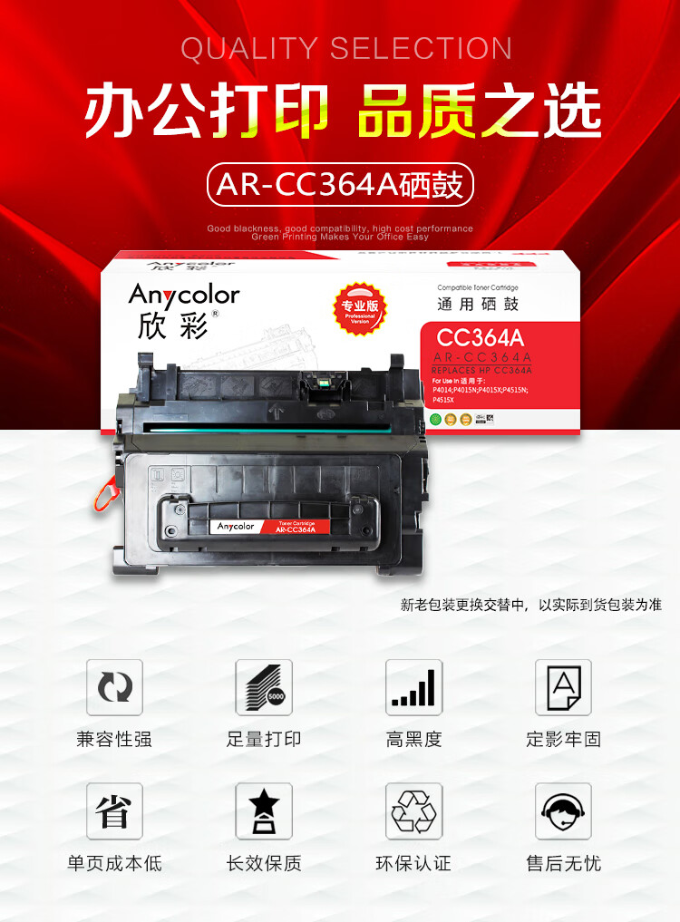 欣彩(Anycolor) AR-CC364A 专业版 10000页 适用惠普P4014 硒鼓 1.00 只/支 (计价单位:支) 黑色