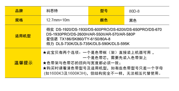 科思特 KST-80D-8 宽12.7mm 色带架 1.00 盒/个 (计价单位:个) 黑色