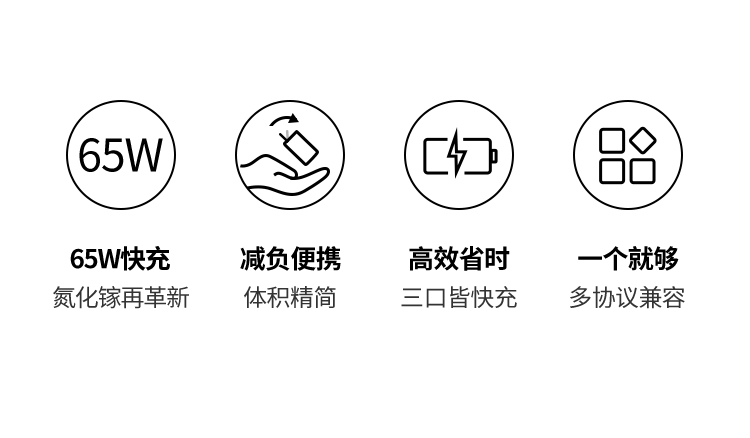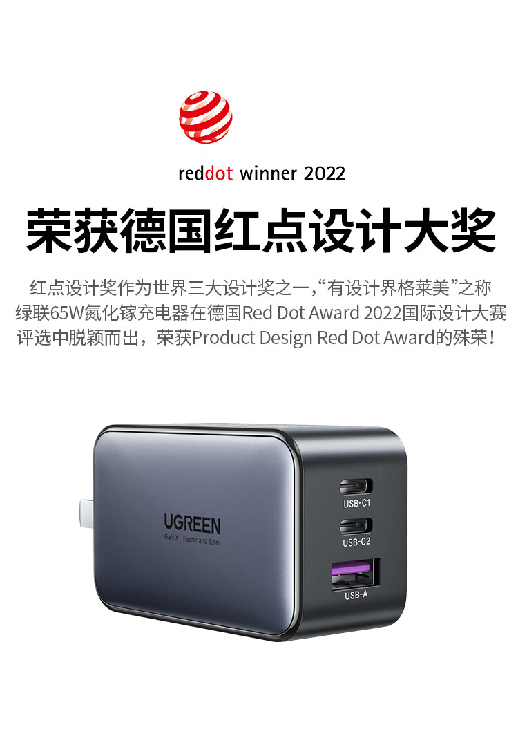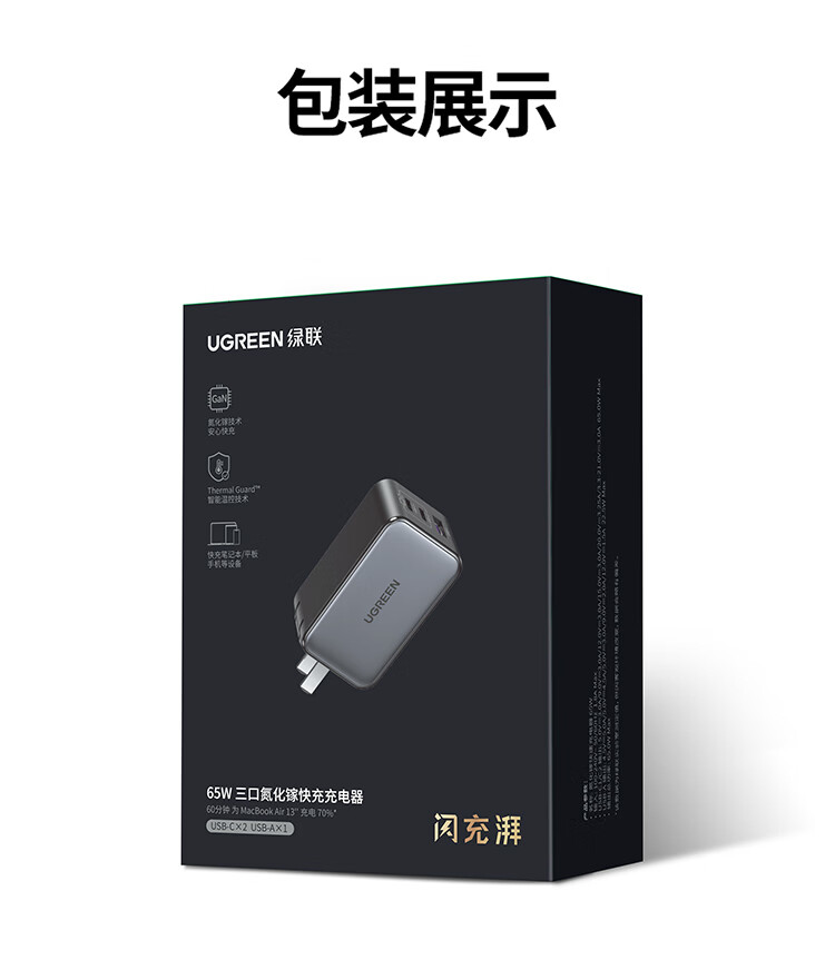 绿联 GaN氮化镓PD65W多口充电器快充头(不含数据线) /个 黑色