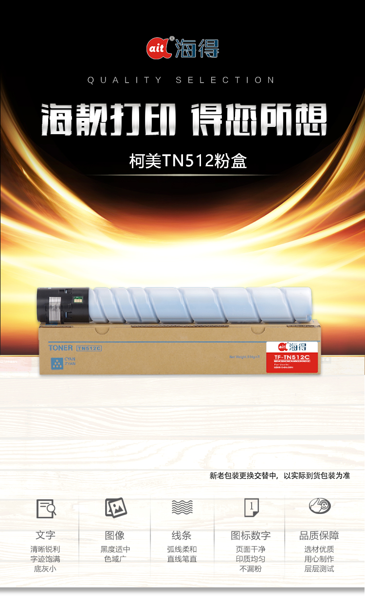 海得(ait) TF-TN512C 适用机型:柯尼卡美能达bizhub c454 c554 复印机 打印量:25000页 粉盒 1.00 只/支 (计价单位:支) 蓝色