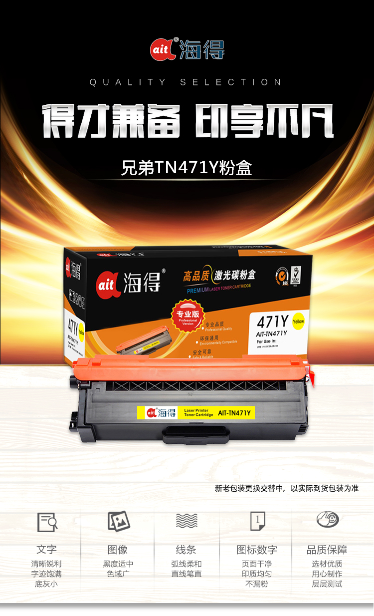 海得(ait) AIT-TN471Y 专业版 适用机型:兄弟 HL-L8260CDN L9310CDW L8900CDW 打印量:1800页 粉盒 1.00 只/支 (计价单位:支) 黄色