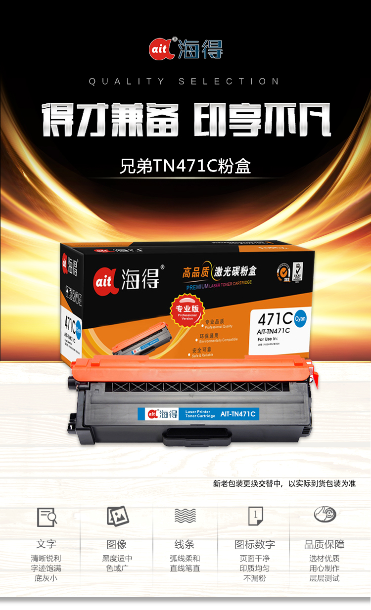 海得(ait) AIT-TN471C 专业版 适用机型:兄弟 HL-L8260CDN L9310CDW L8900CDW 打印量:1800页 粉盒 1.00 只/支 (计价单位:支) 蓝色