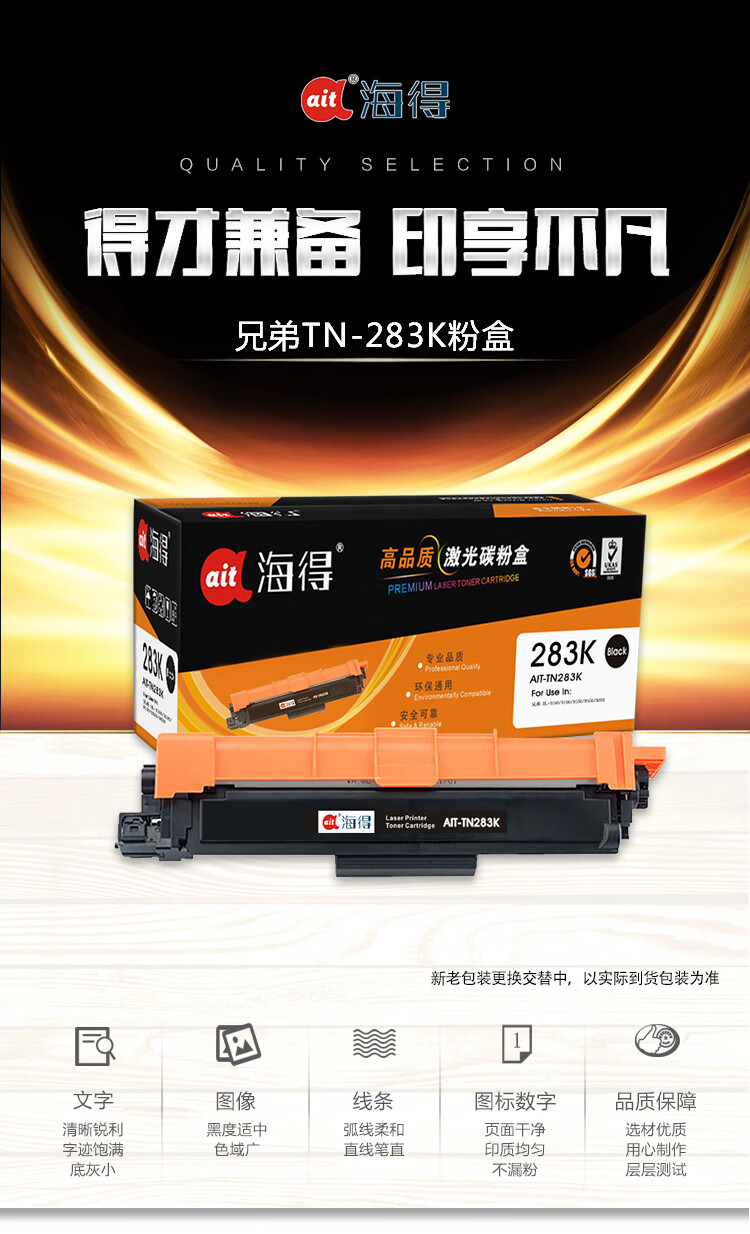 海得(ait) AIT-TN283K 专业版 适用机型:兄弟 HL-3160 3190 9150 9350 9030 打印量:1400页 粉盒 1.00 只/支 (计价单位:支) 黑色