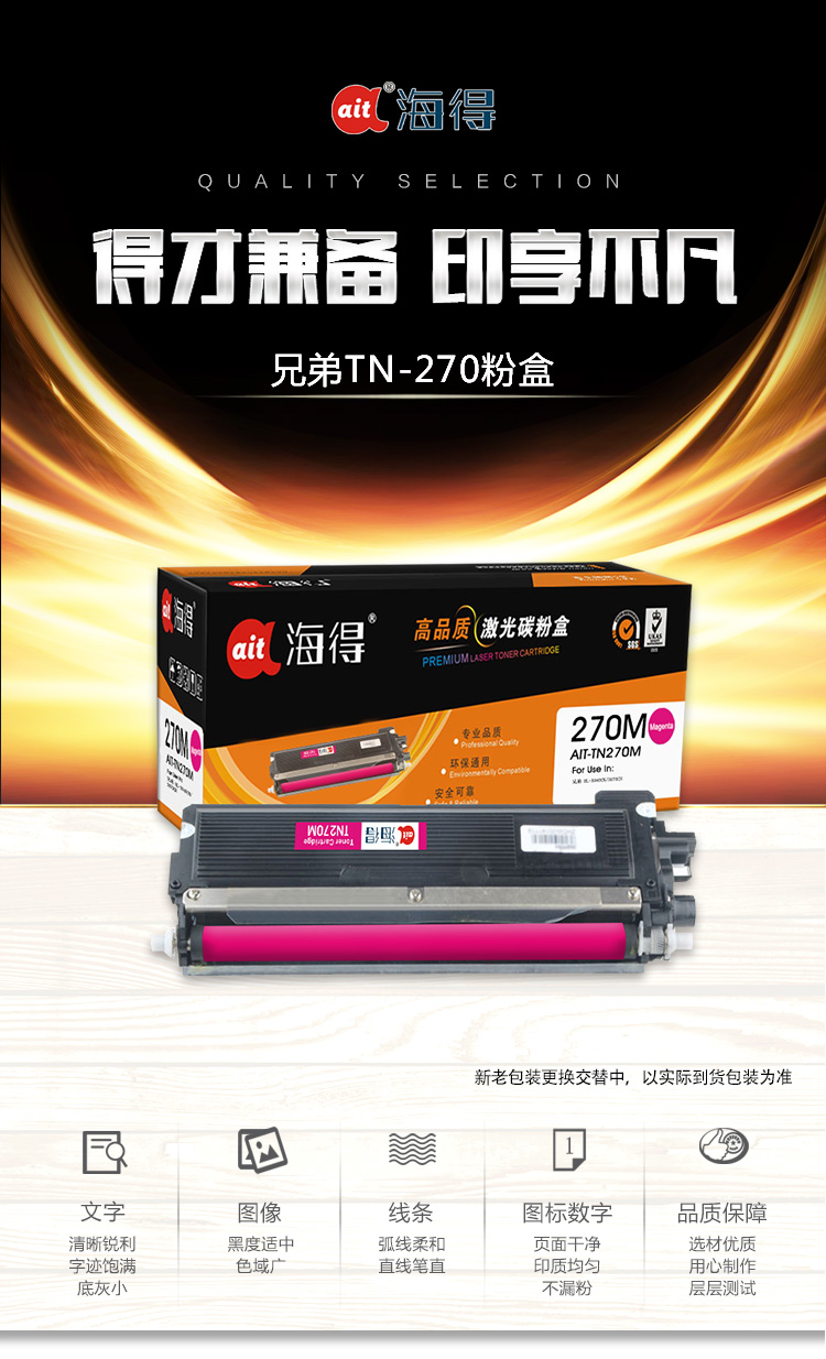 海得(ait) AIT-TN270M 专业版 适用机型:兄弟 HL-3040CN 3070CN 打印量:1400页 粉盒 1.00 只/支 (计价单位:支) 红色
