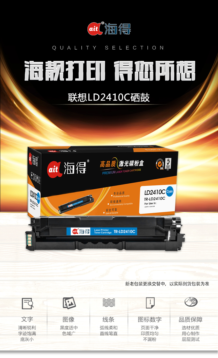 海得(ait) TR-LD2410C 专业版 适用机型:联想LENOVO CS2410DN 打印量:1500页 硒鼓 1.00 只/支 (计价单位:支) 蓝色