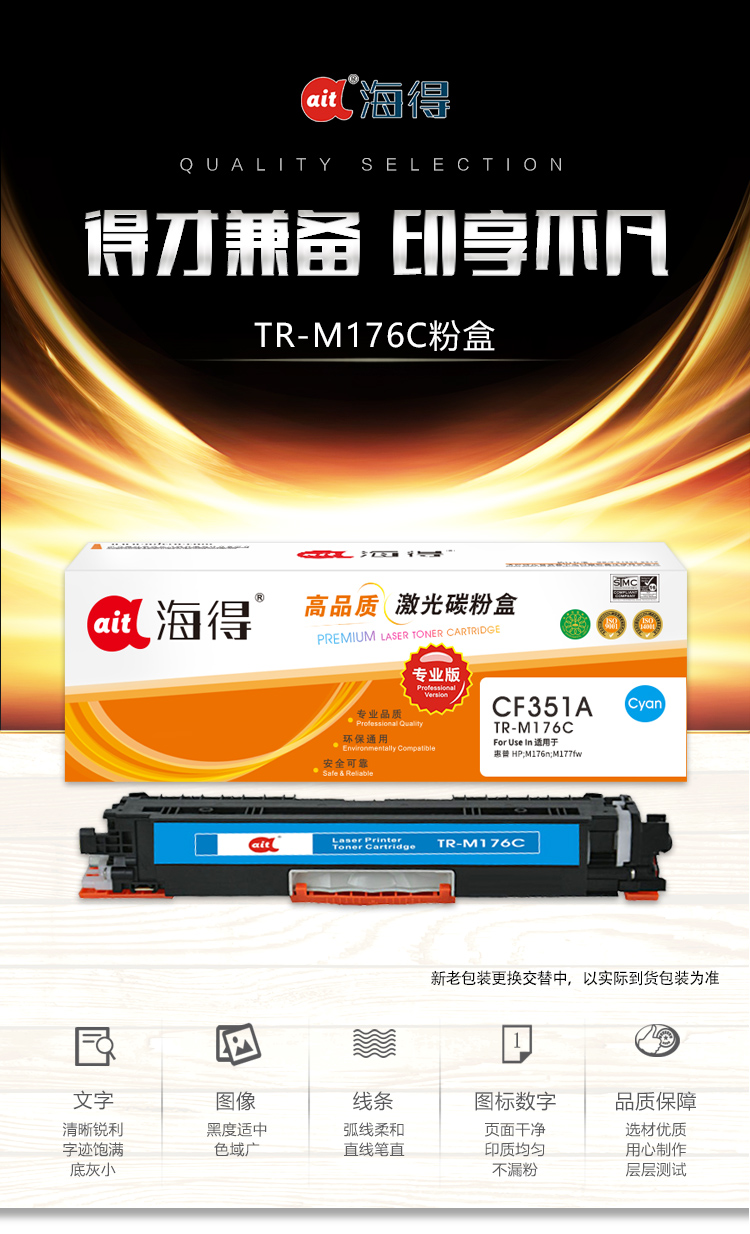 海得(ait) AIT-M176C CF351A专业版 适用机型:惠普HP LaserJet M176n M177fw 打印量:1000页 硒鼓 1.00 只/盒 (计价单位:盒) 蓝色