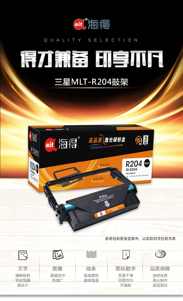 海得(ait) AIT-R204 专业版 适用机型:三星SL-M3325ND M3825D M4025ND M3375HD 打印量:30000页 硒鼓 1.00 只/支 (计价单位:支) 黑色