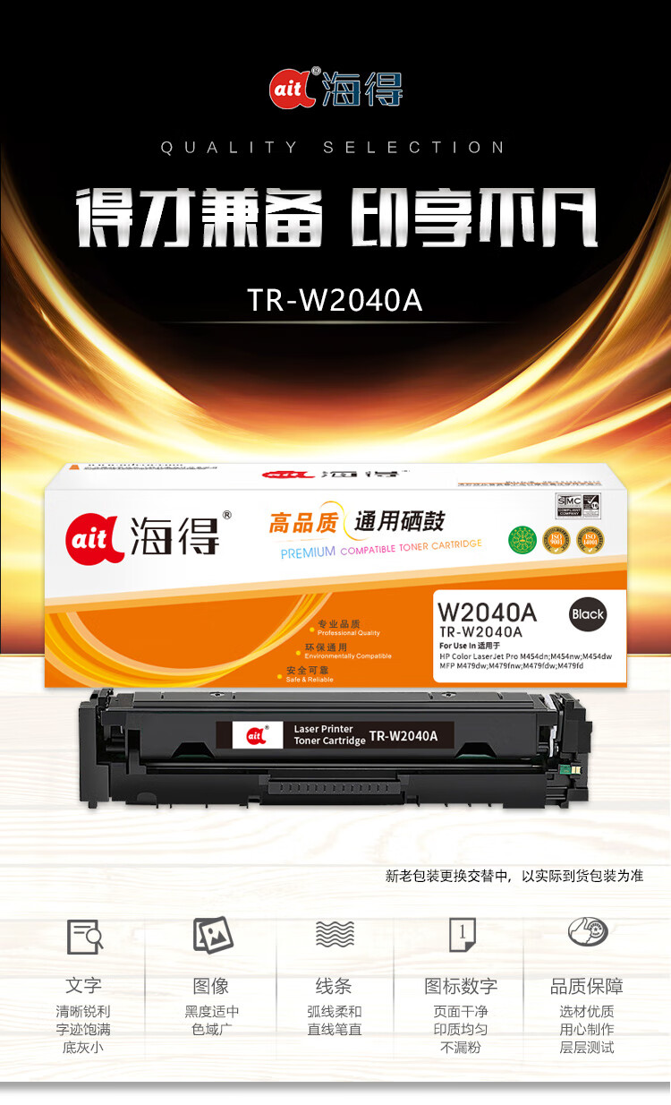 海得(ait) TR-W2040A 带芯片 适用机型:惠普M454dn M454nw M479dw M479fnw fdw fdn 打印量:2400页 硒鼓 1.00 只/支 (计价单位:支) 黑色