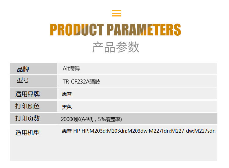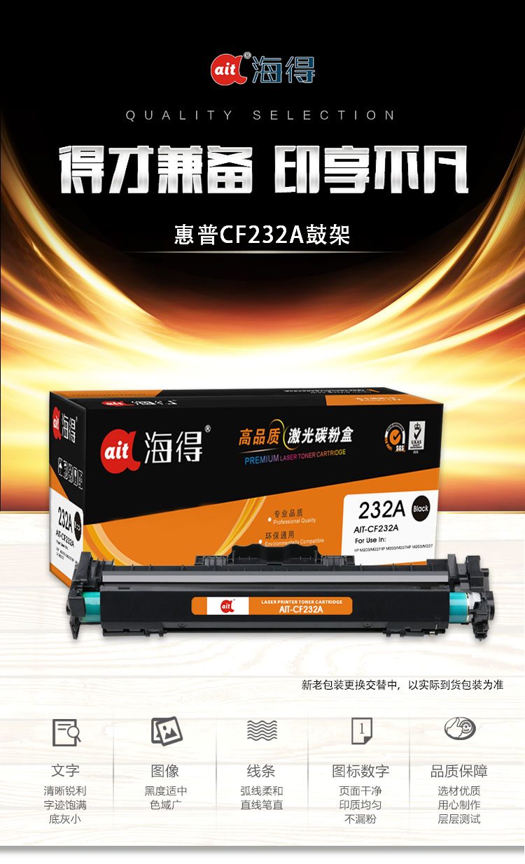 海得(ait) AIT-CF232A 专业版 23000页不含粉盒 硒鼓 1.00 只/支 (计价单位:支) 黑色