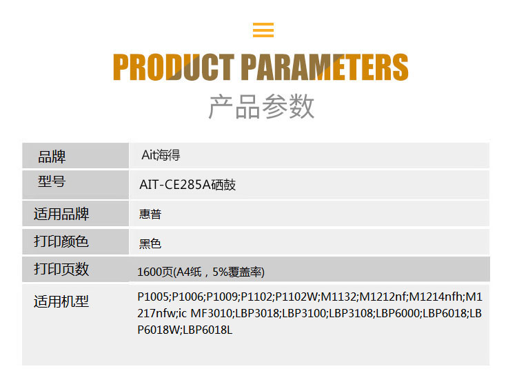 海得(ait) AIT-CE285A 专业版 打印量约1600页 硒鼓 1.00 只/支 (计价单位:支) 黑色