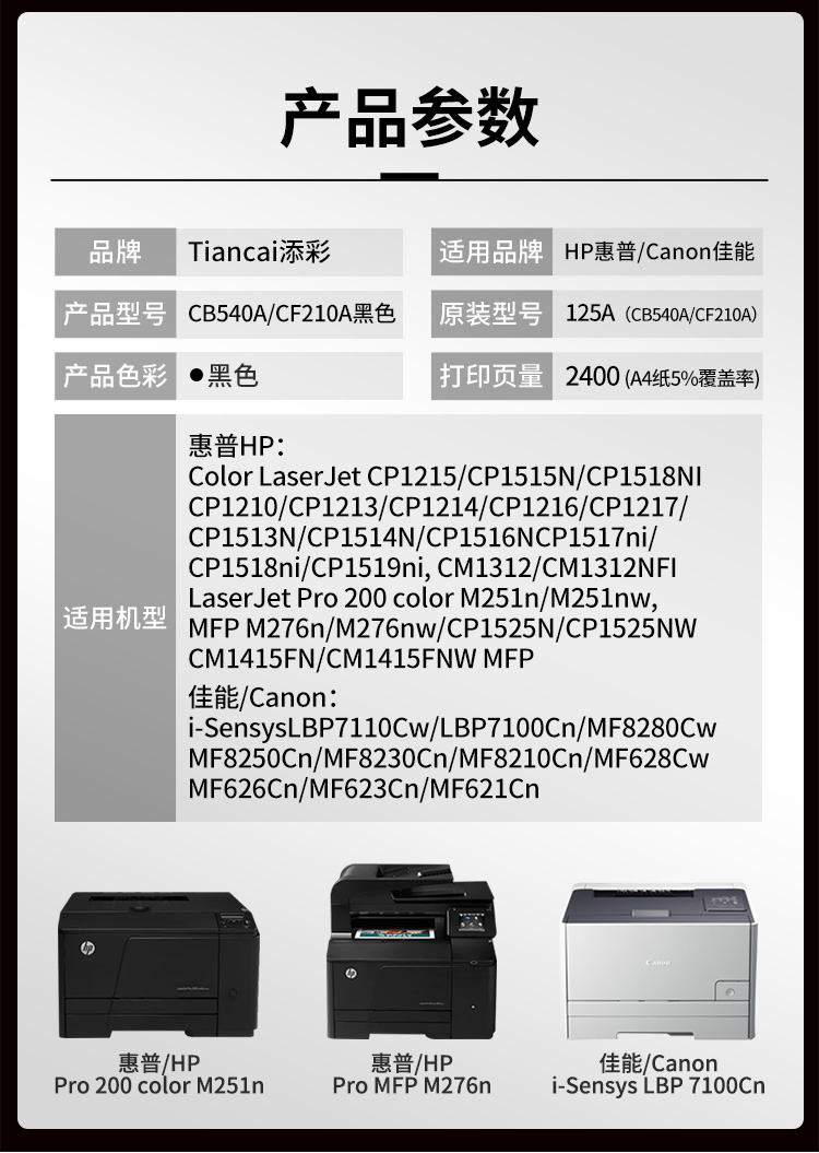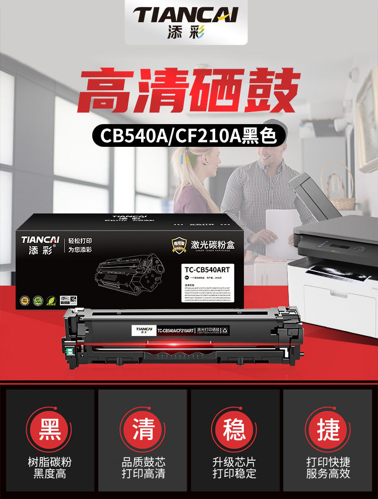 添彩 TC-CB540ART 商用版 易加粉 适用于HP CP1215/CP1515N/CP1518NI/CP1210 打印量2400页 硒鼓 1.00 只/个 (计价单位:个) 黑色 黑色