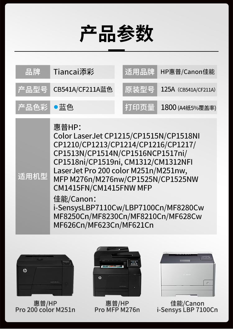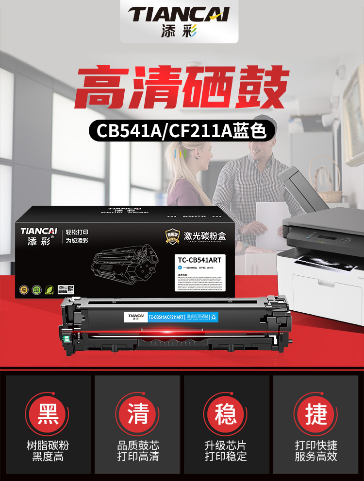 添彩 TC-CB541ART 商用版 易加粉 适用于HP CP1215/CP1515N/CP1518NI/CP1210 打印量1800页 硒鼓 (计价单位:只) 蓝色 蓝色