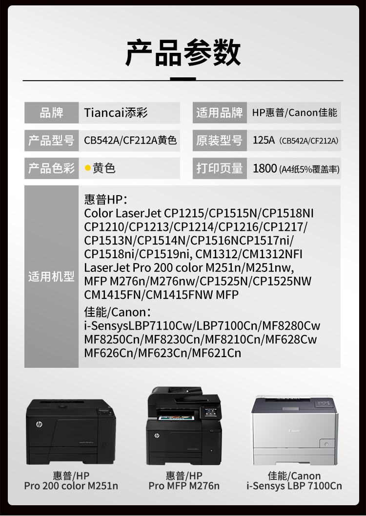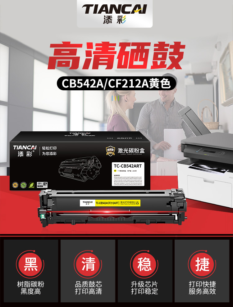 添彩 TC-CB542ART 商用版 易加粉 适用于HP CP1215/CP1515N/CP1518NI/CP1210 打印量1800页 硒鼓 (计价单位:只) 黄色 黄色