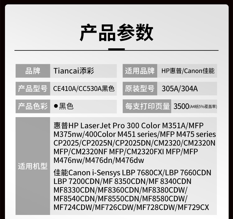 添彩 TC-CC530A 商用版 适用于HP M351A 打印量3500页 硒鼓 1.00 只/个 (计价单位:个) 黑色 黑色