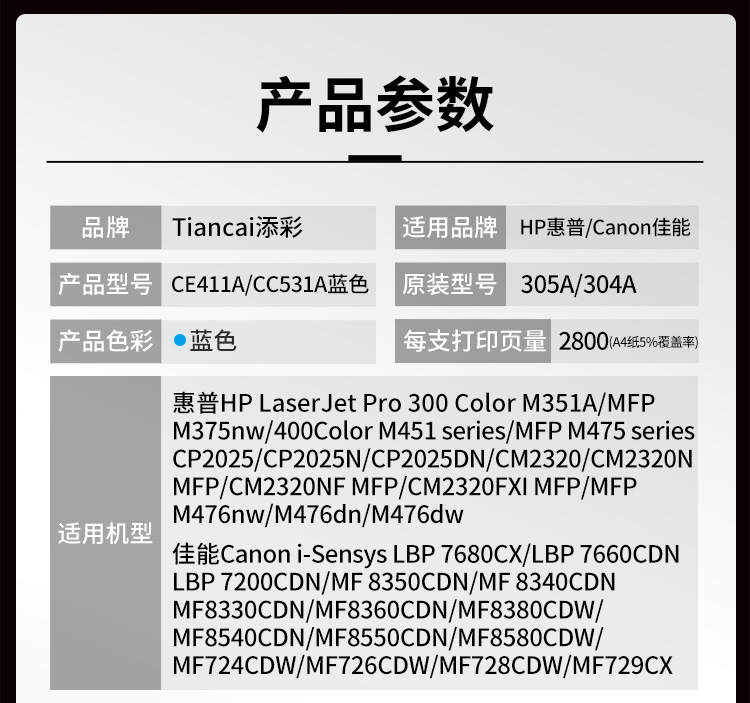 添彩 TC-CC531A 商用版 适用于HP M351A 打印量2800页 硒鼓 (计价单位:只) 蓝色 蓝色