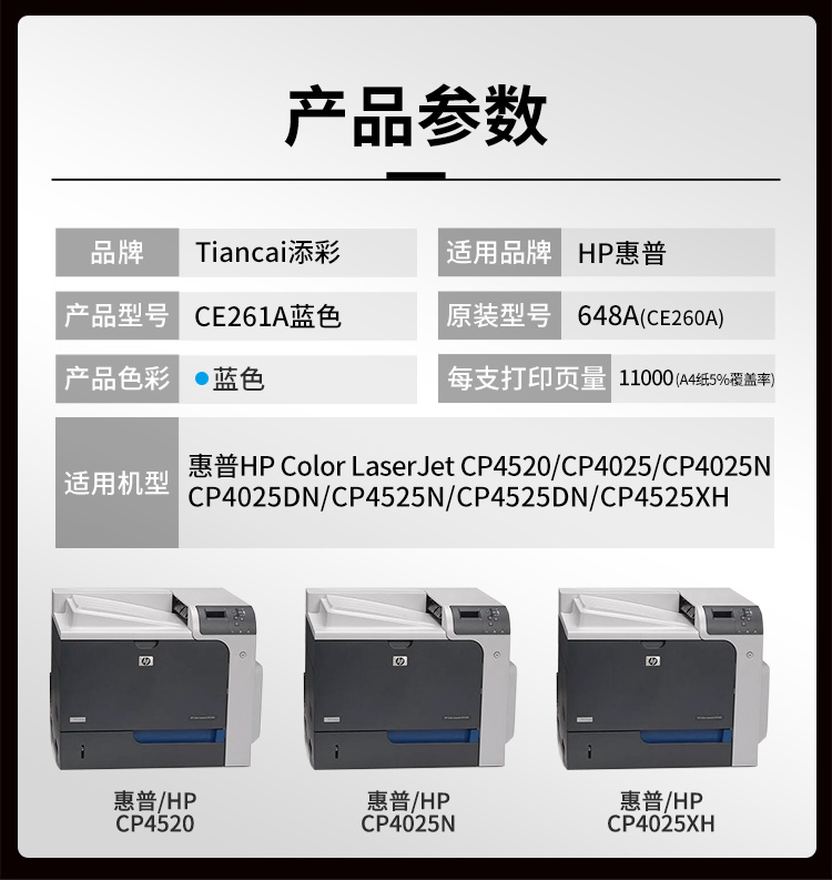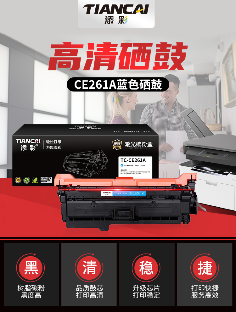 添彩 TC-CE261A 商用版 适用于HP Color LaserJet CP4520/CP4025/CP4525 打印量11000页 硒鼓 1.00 只/个 (计价单位:个) 蓝色 蓝色