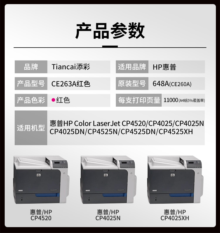 添彩 TC-CE263A 商用版 适用于HP Color LaserJet CP4520/CP4025/CP4525N 打印量11000页 硒鼓 1.00 只/个 (计价单位:个) 红色 红色