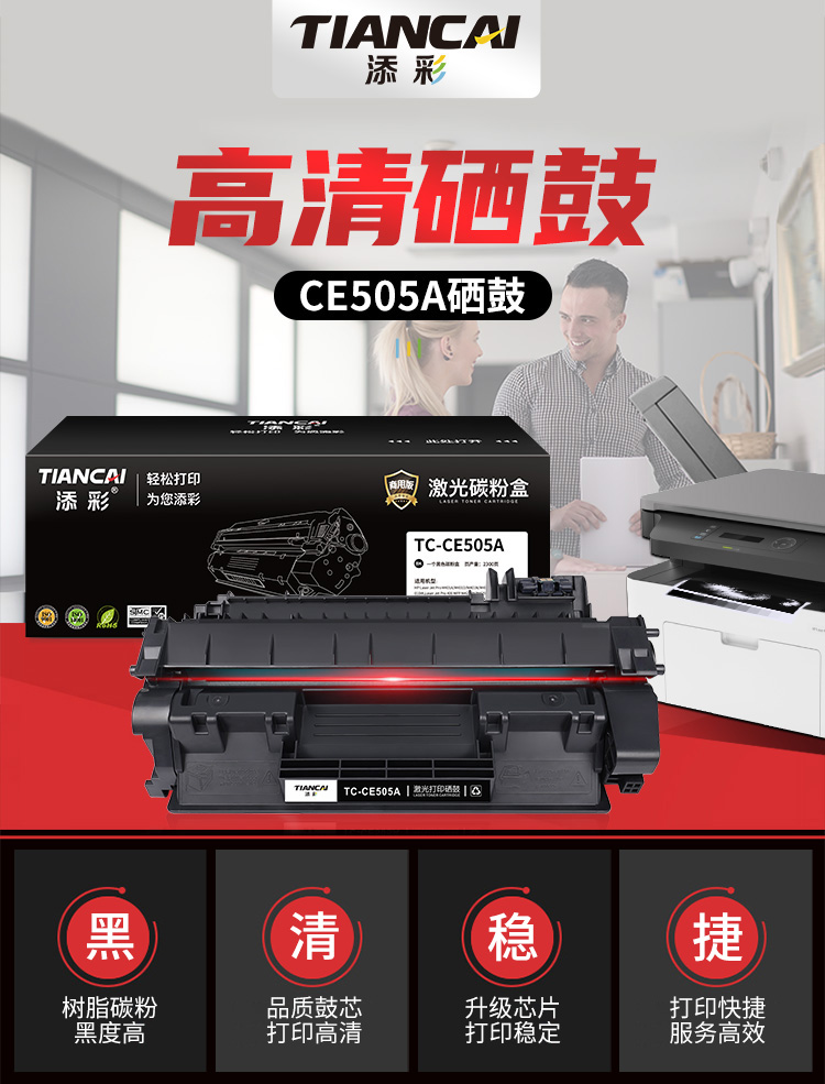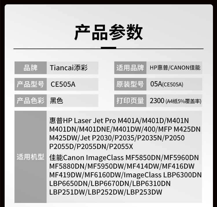 添彩 TC-CE505A 商用版 适用于HP P2030/P2035/P2050/P2055硒鼓 个 黑色-打印量2300页