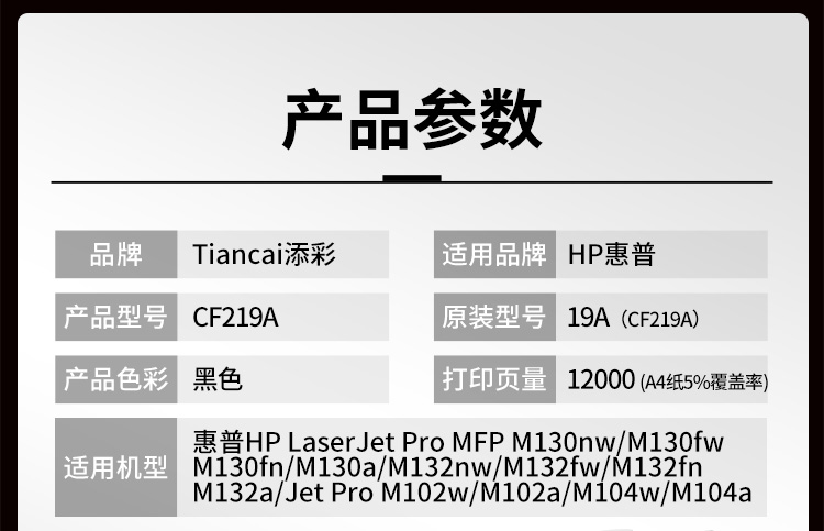 添彩 TC-CF219A 商用版适用于HP LaserJet Pro MFP M130 鼓组件个黑色 黑色