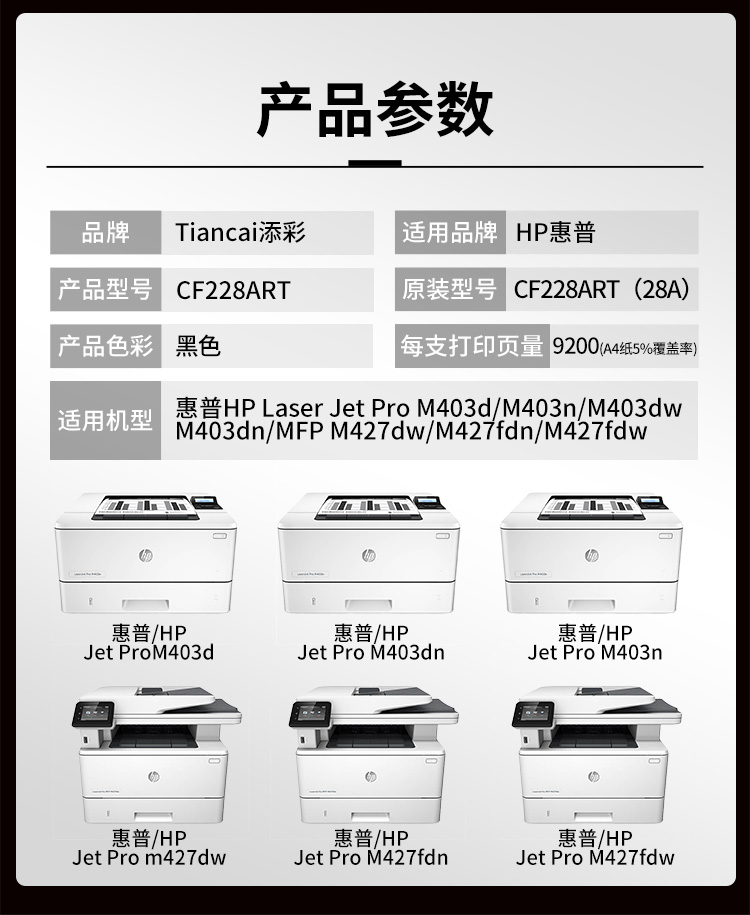 添彩 TC-CF228ART 3000页 (适用于HP Laser Jet Pro M403d/M403n/M403dw/M403dn等) 66 (计价单位:只) 黑色 黑色