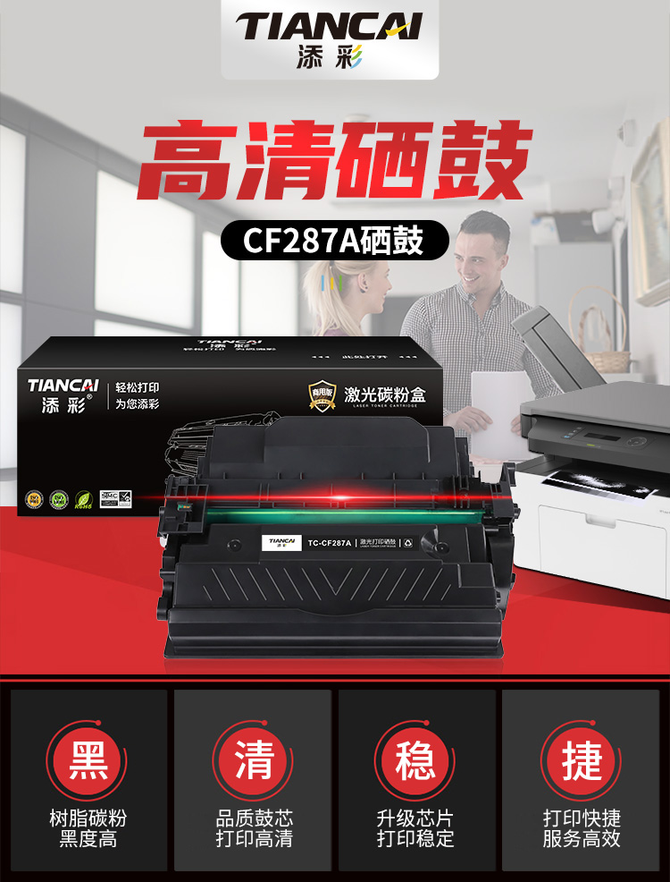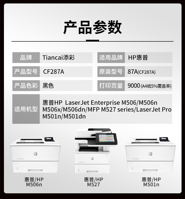 添彩 TC-CF287A 商用版 适用于HP M501dn/M506dn/M506n/M506x/M527c/M527z 打印量9000页 硒鼓 1.00 只/个 (计价单位:个) 黑色 黑色