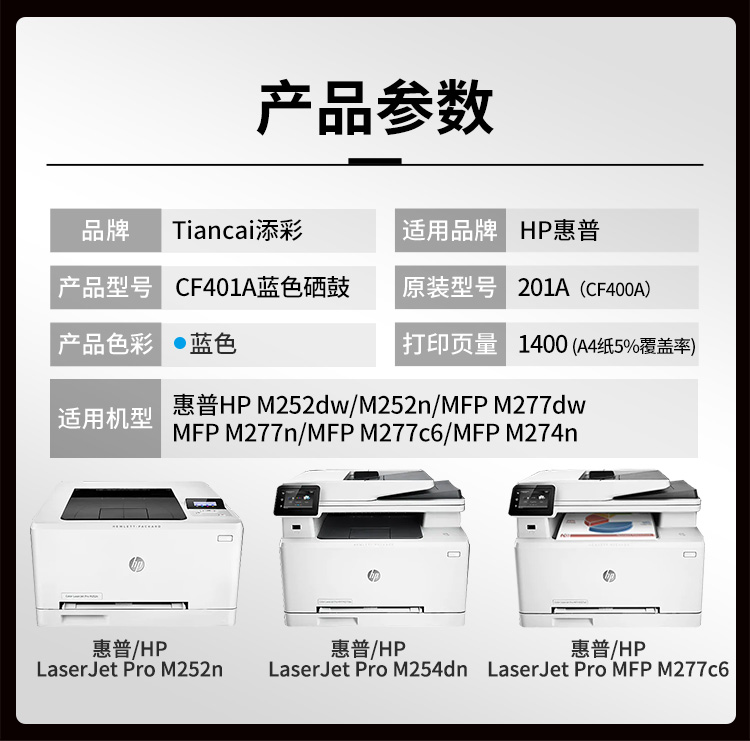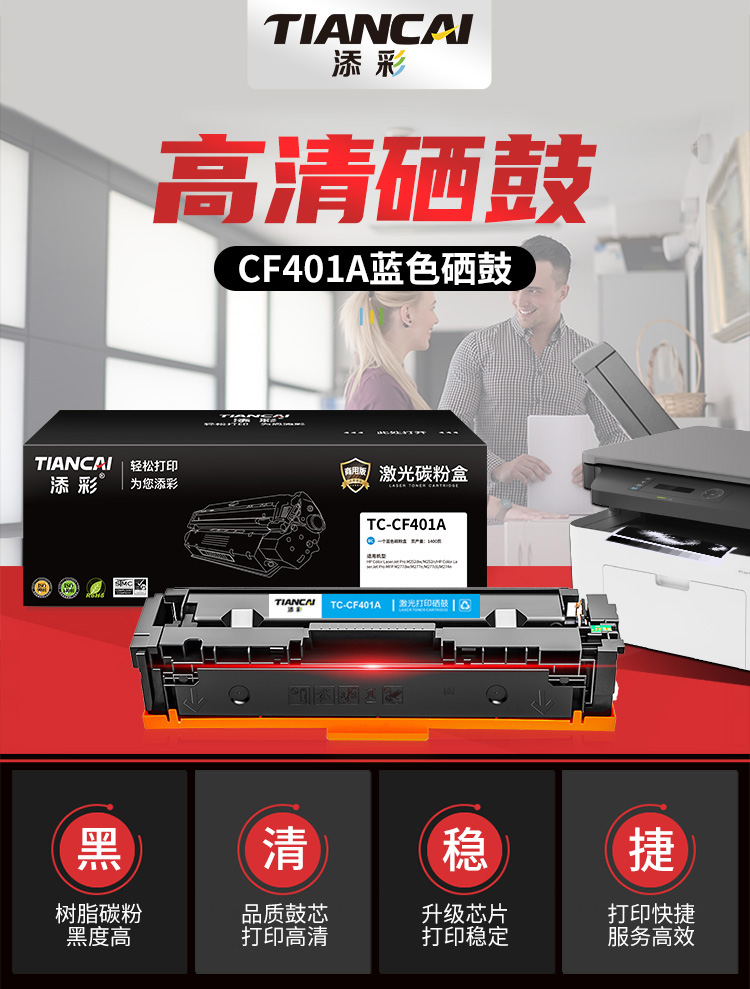 添彩 TC-CF401A 商用版 适用于HP M252 MFP M277/M274n 硒鼓 个 蓝色 蓝色-打印量1400页