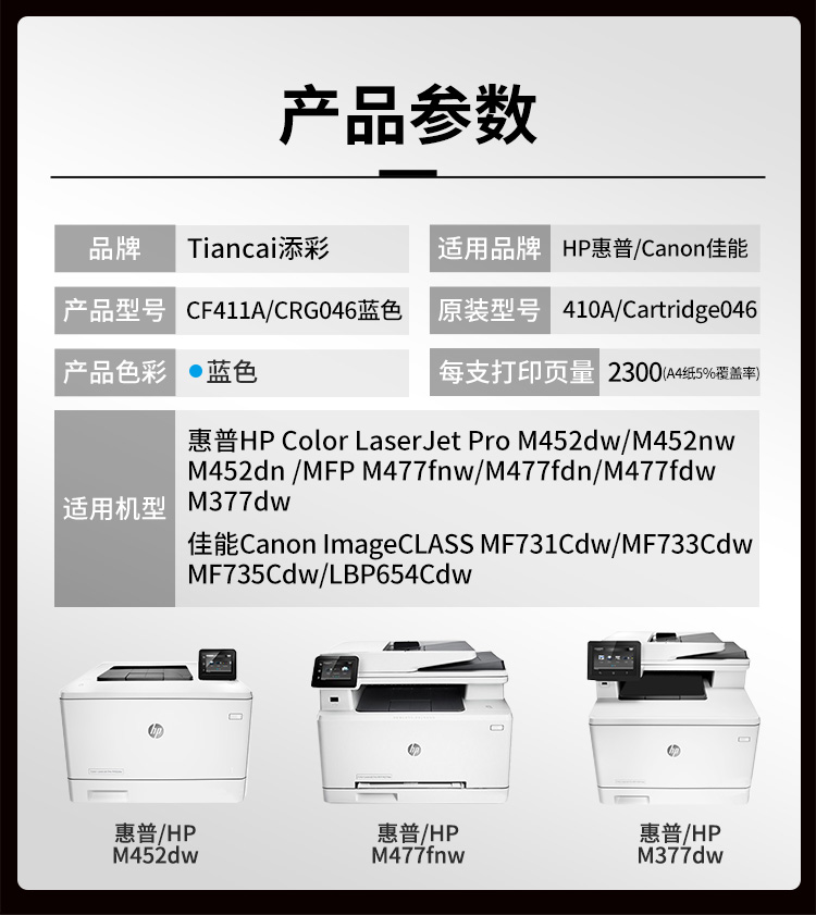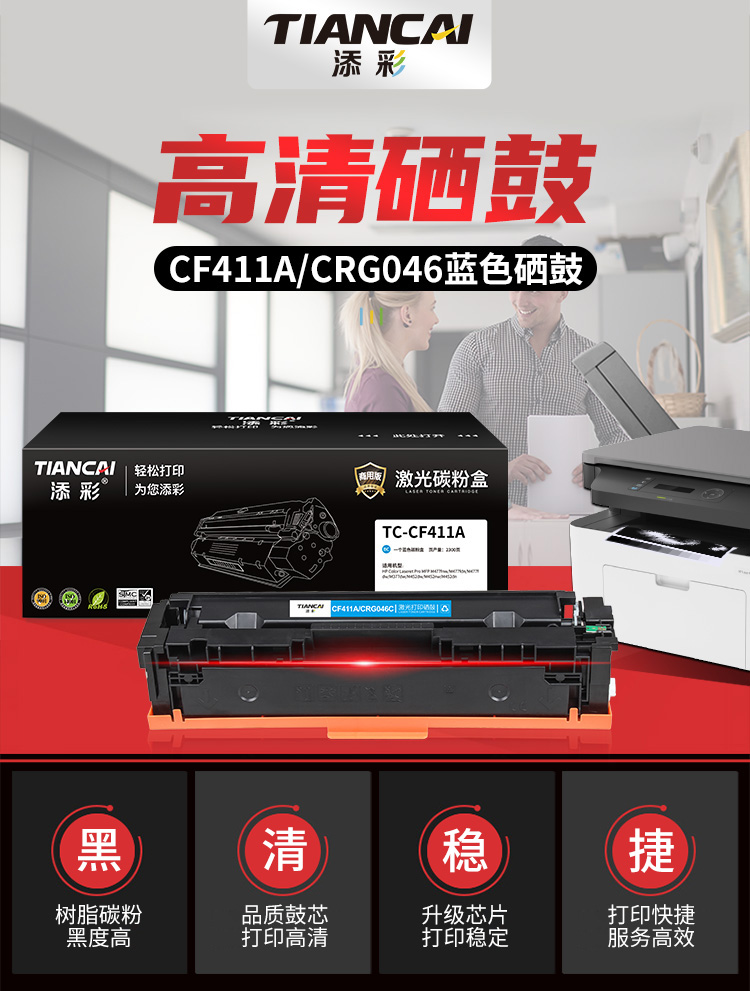 添彩 TC-CF411A 硒鼓 蓝色 2300页 适用于HP Color Laseret Pro MFP M477fnw 硒鼓 1.00 只/支 (计价单位:支) 蓝色 蓝色