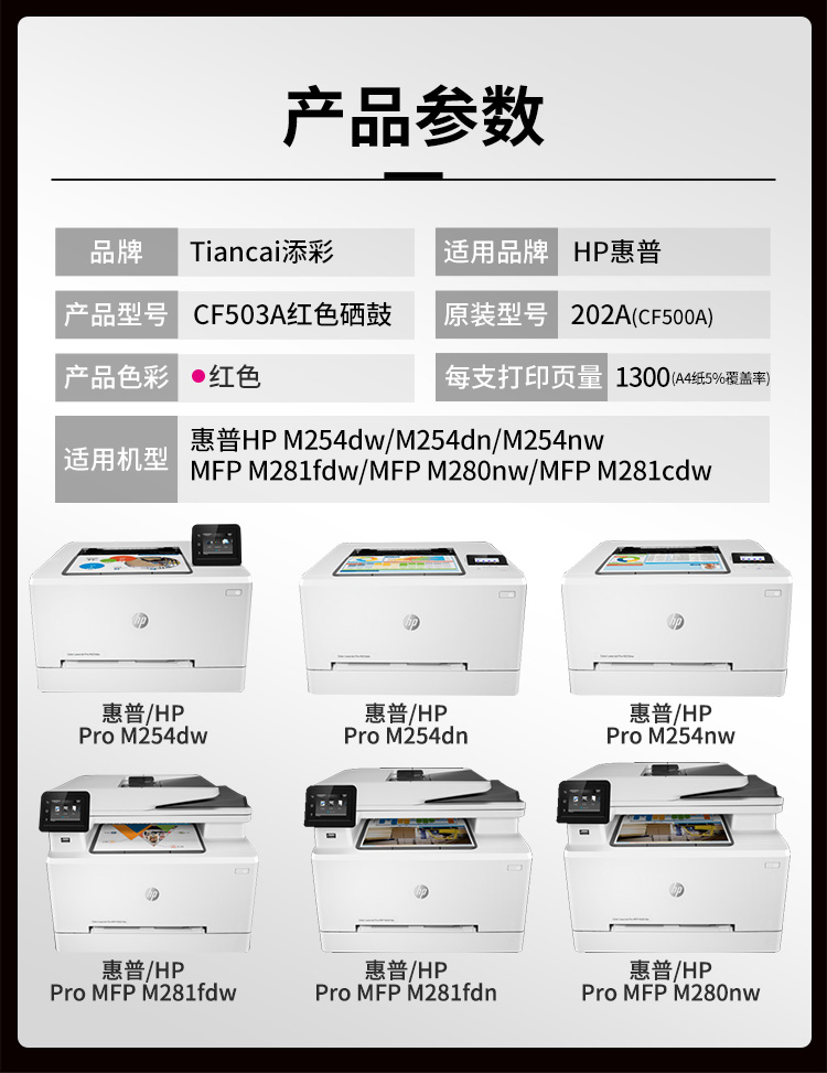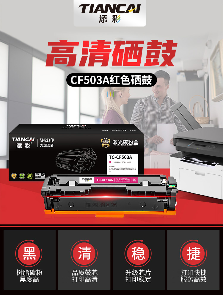 添彩 TC-CF503A硒鼓 1300页 红色 适用于HP Color LaserJet Pro M254dw/M254dn 硒鼓 1.00 只/支 (计价单位:支) 红色 红色