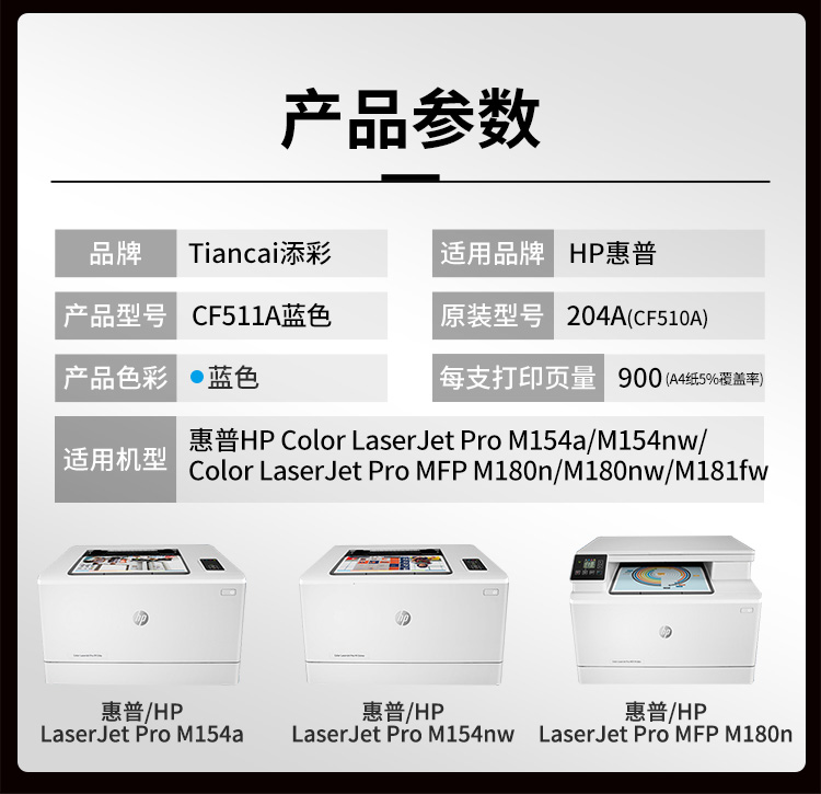 添彩 TC-CF511A硒鼓 900页 蓝色 适用于HP Color LaserJet Pro M154a/M154nw 硒鼓 1.00 只/支 (计价单位:支) 蓝色 蓝色