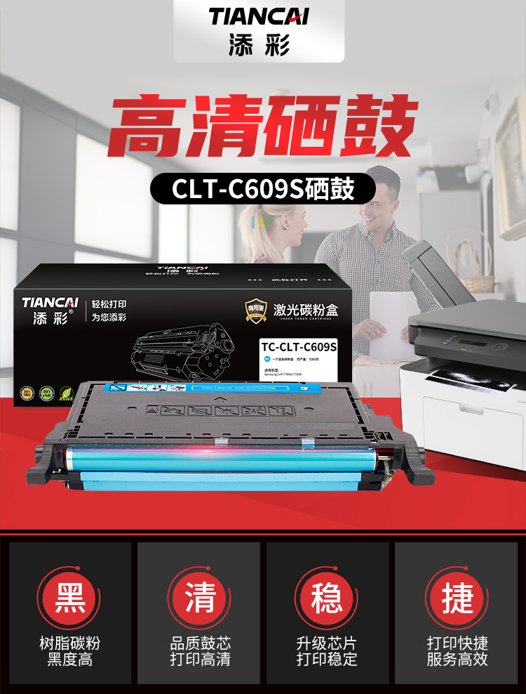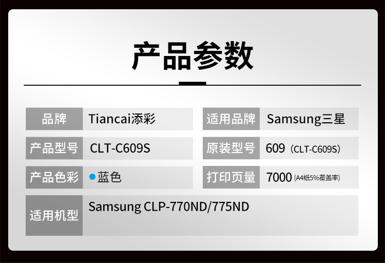 添彩 TC-CLT-C609S 商用版 适用于Samsung CLP-770ND/775ND 打印量7000页 硒鼓 1.00 只/个 (计价单位:个) 蓝色 蓝色
