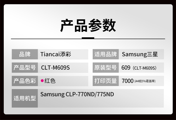 添彩 TC-CLT-M609S 商用版 适用于Samsung CLP-770ND/775ND 打印量7000页 硒鼓 1.00 只/个 (计价单位:个) 红色 红色