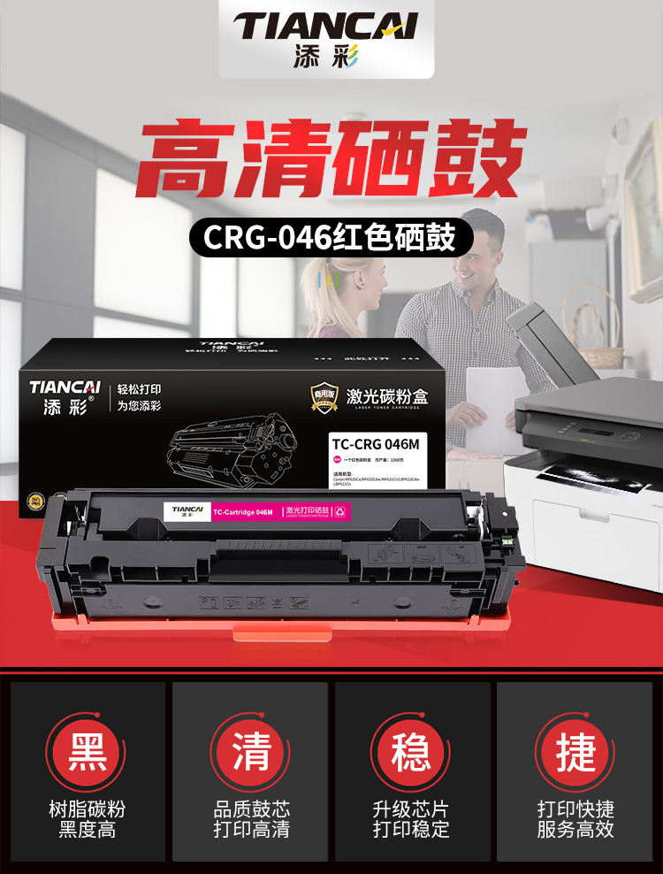 添彩 TC-CRG 046M 商用版 适用于Canon MF735Cx/MF732Cdw/LBP654Cx/LBP653Cdw 打印量2300页 硒鼓 1.00 只/个 (计价单位:个) 红色 红色