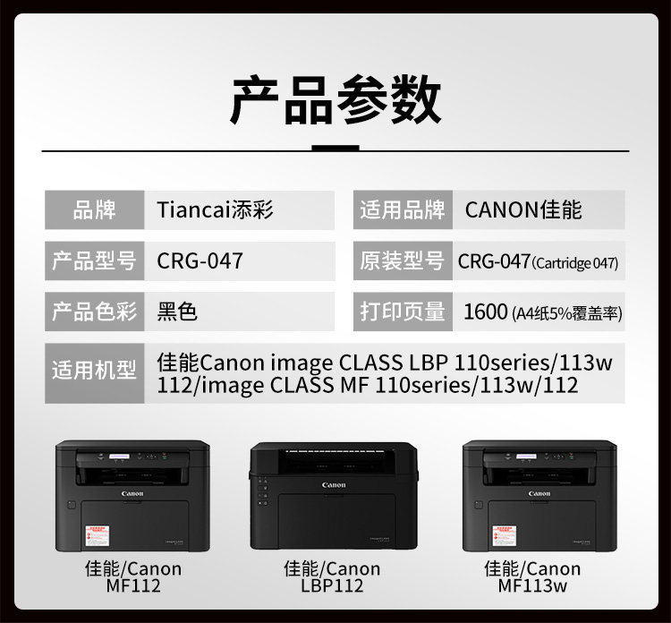 添彩 TC-CRG 047 商用版 适用于Canon imageCLASS LBP/113w硒鼓 个 黑色-打印量1600页