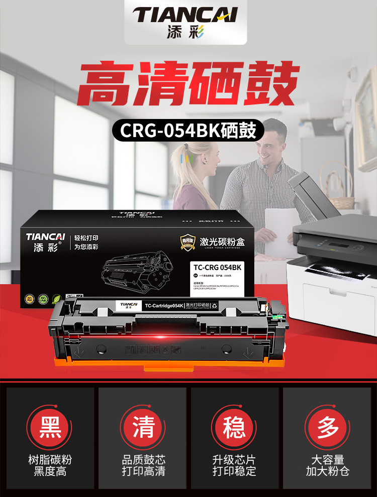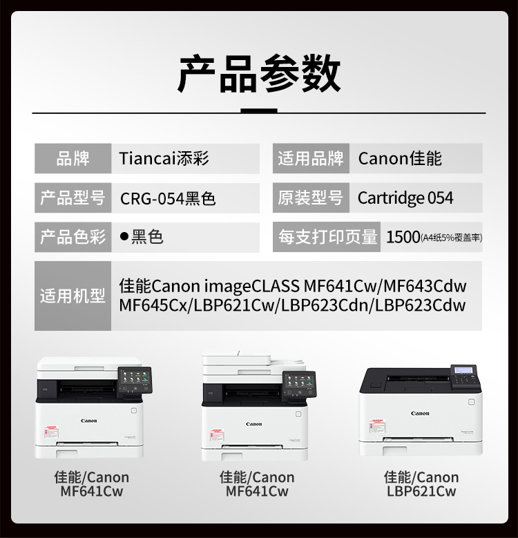 添彩 TC-CRG 054BK 商用版 适用于Canon MF641Cw MF643Cdw 硒鼓 个 黑色-打印量1500页