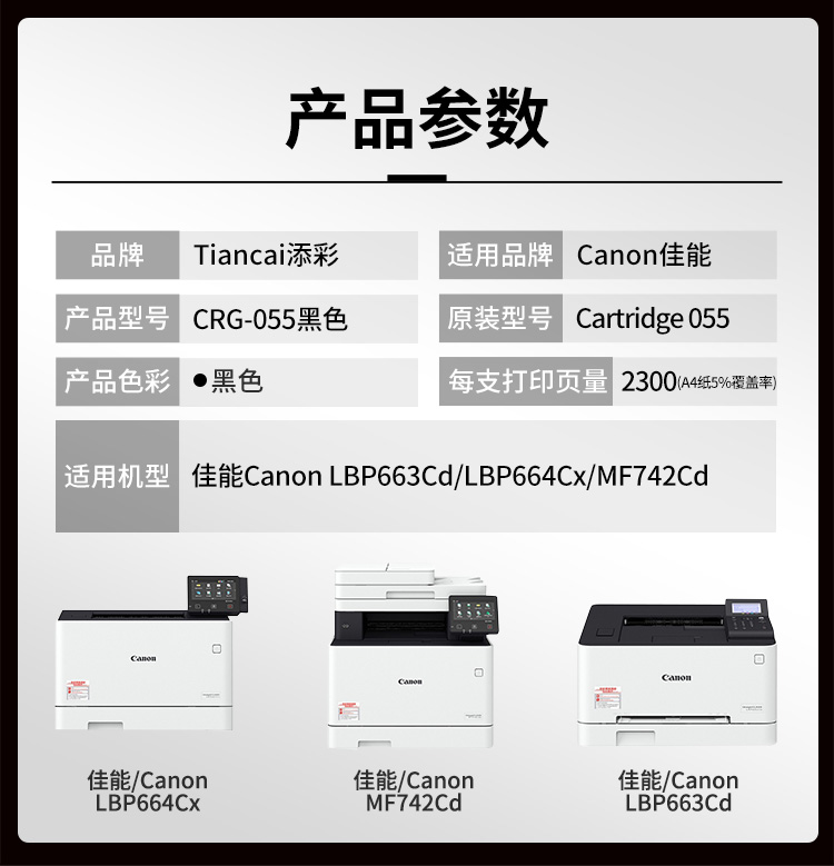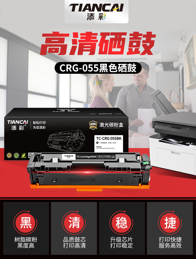 添彩 TC-CRG 055BK 商用版 适用于Canon LBP663Cd/LBP664Cx硒鼓 个 黑色-打印量2300页