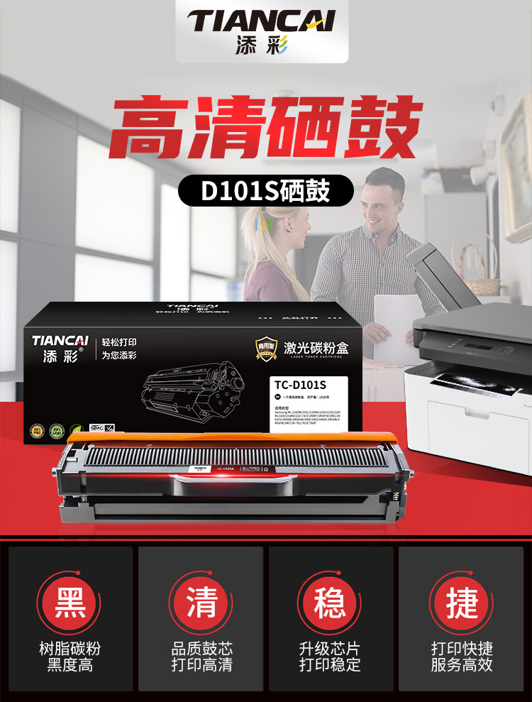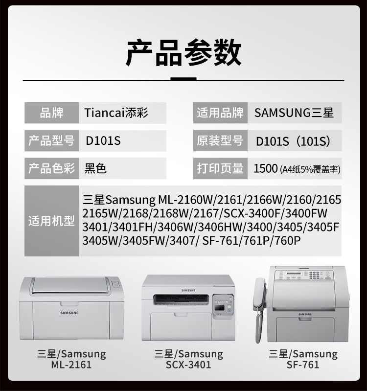 添彩 TC-D101S 商用版 适用于Samsung ML-2160/2161 硒鼓 个 黑色- 打印量1500页