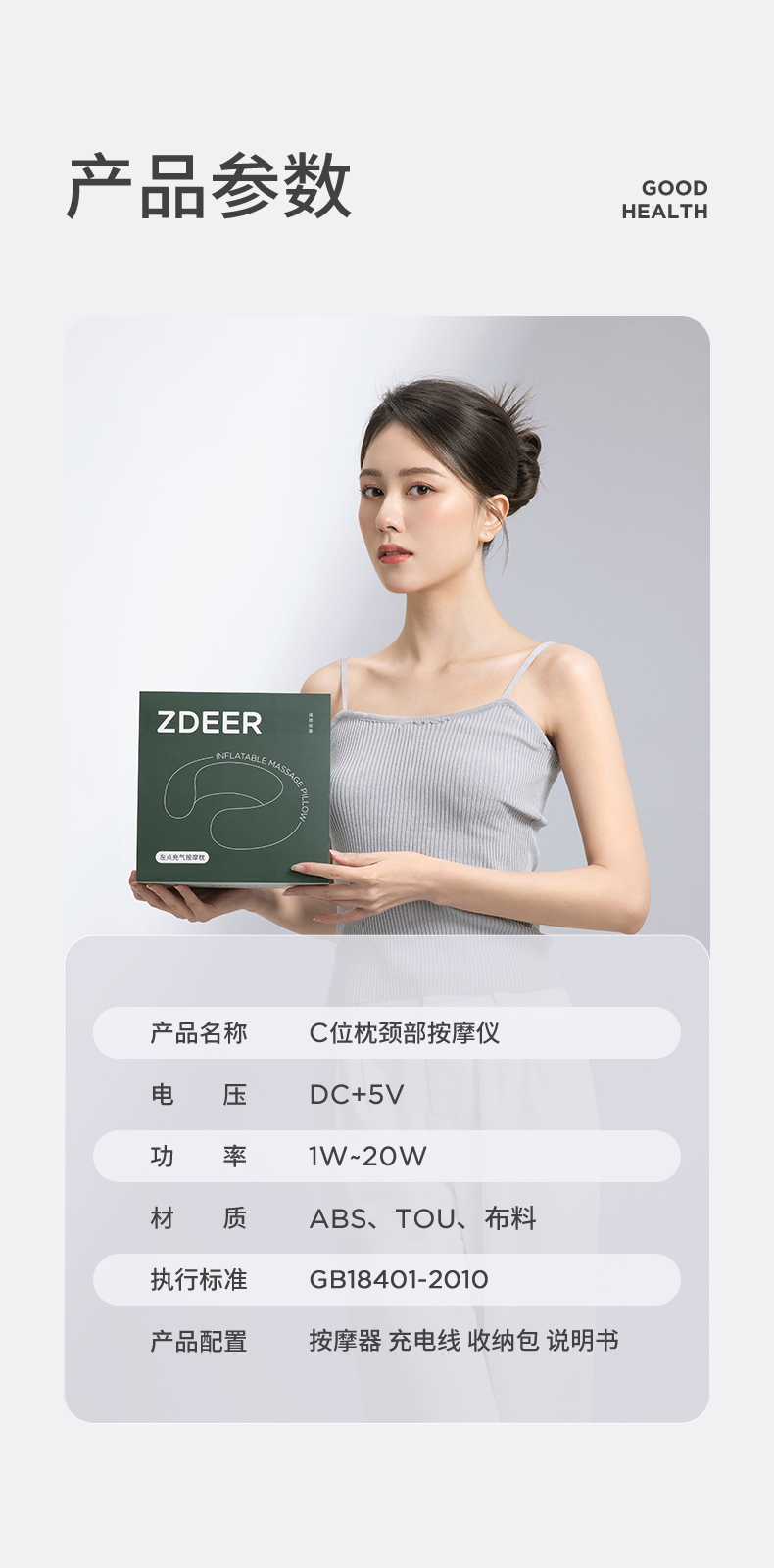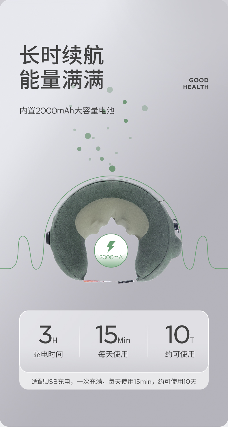 左点(Zdeer)按摩器U型枕ZD-JZ0101 铁灰色