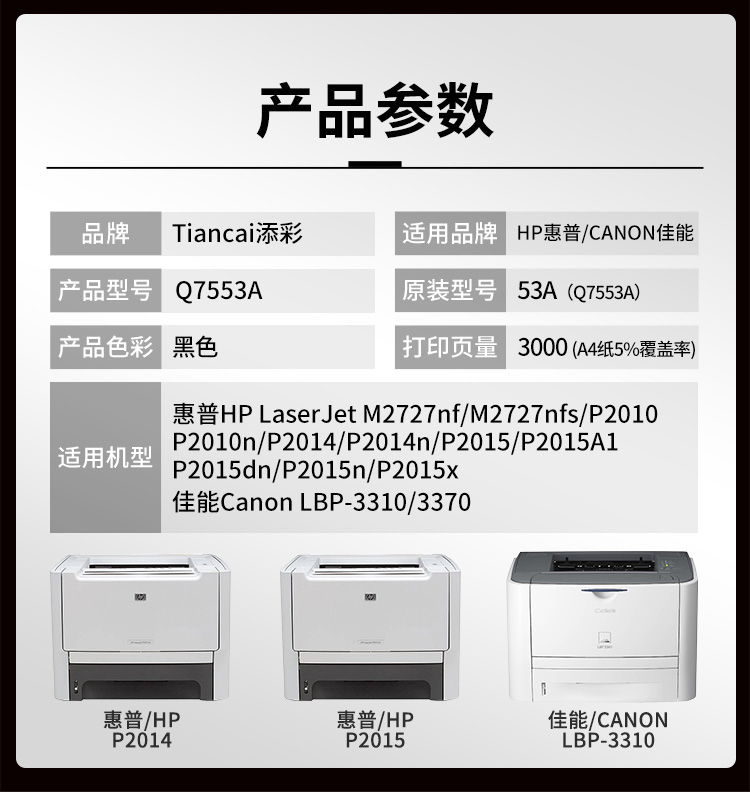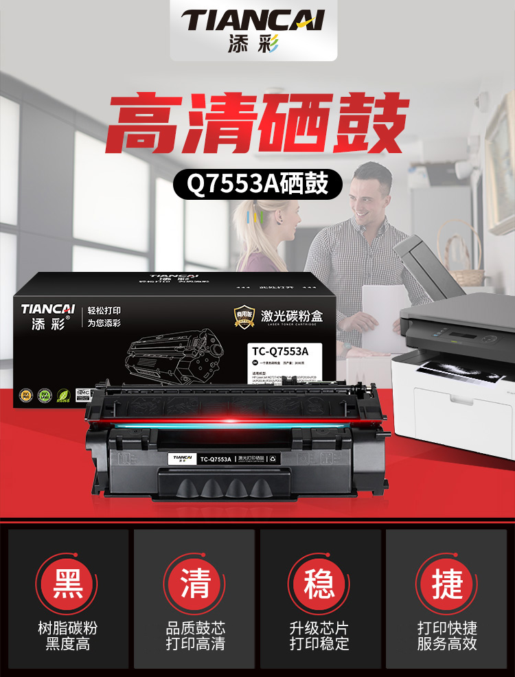添彩 TC-Q7553A 商用版 适用于HP M2727nf/P2010/P2014 Canon LBP3310/3370 打印量3000页 硒鼓 1.00 只/个 (计价单位:个) 黑色 黑色